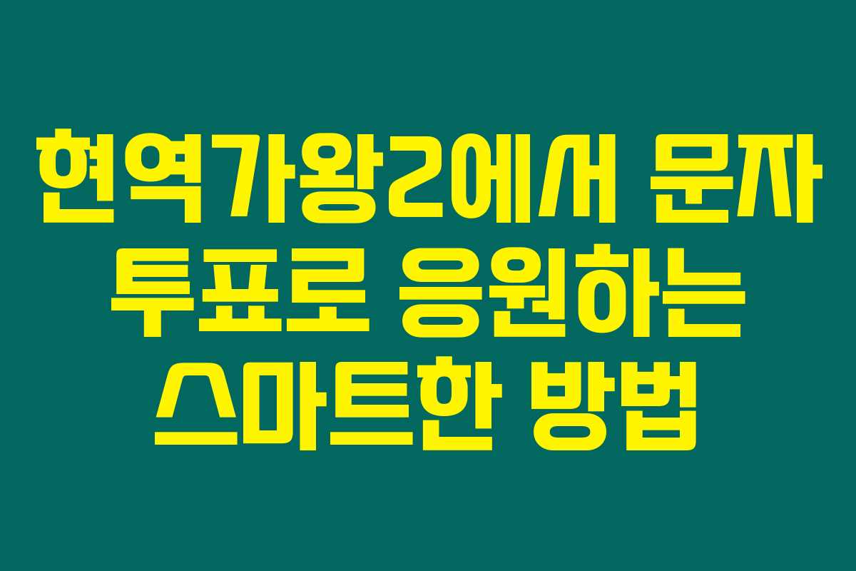 현역가왕2 결승전에서 실시간으로 문자 투표를 하시고 싶으신가요? 현역가왕2에서 강력한 여러분의 응원이 필요하답니다. 이렇게 실시간 대국민 문자 투표가 가능한데, 그 방법에 대해 자세히 안내 드릴게요. 문자 투표로 지원하고 싶은 참가자에게 쉽게 응원 메시지를 보낼 수 있답니다.