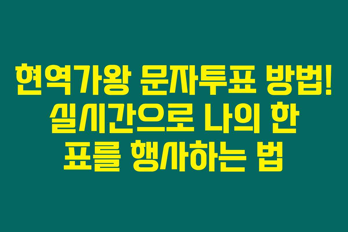 현역가왕 문자투표는 우리나라에서 가장 화제가 되는 트로트 경연 프로그램인 만큼 절대 놓칠 수 없는 이벤트에요. 만약 최고의 가수에게 소중한 한 표를 행사하고 싶다면 아래의 내용을 주의 깊게 담아주세요. 특히 생방송에 참여하는 결승전에서 문자투표를 통해 여러분의 응원이 전달될 수 있습니다. 그렇다면 저와 함께 이 방법을 잘 알아볼까요?
