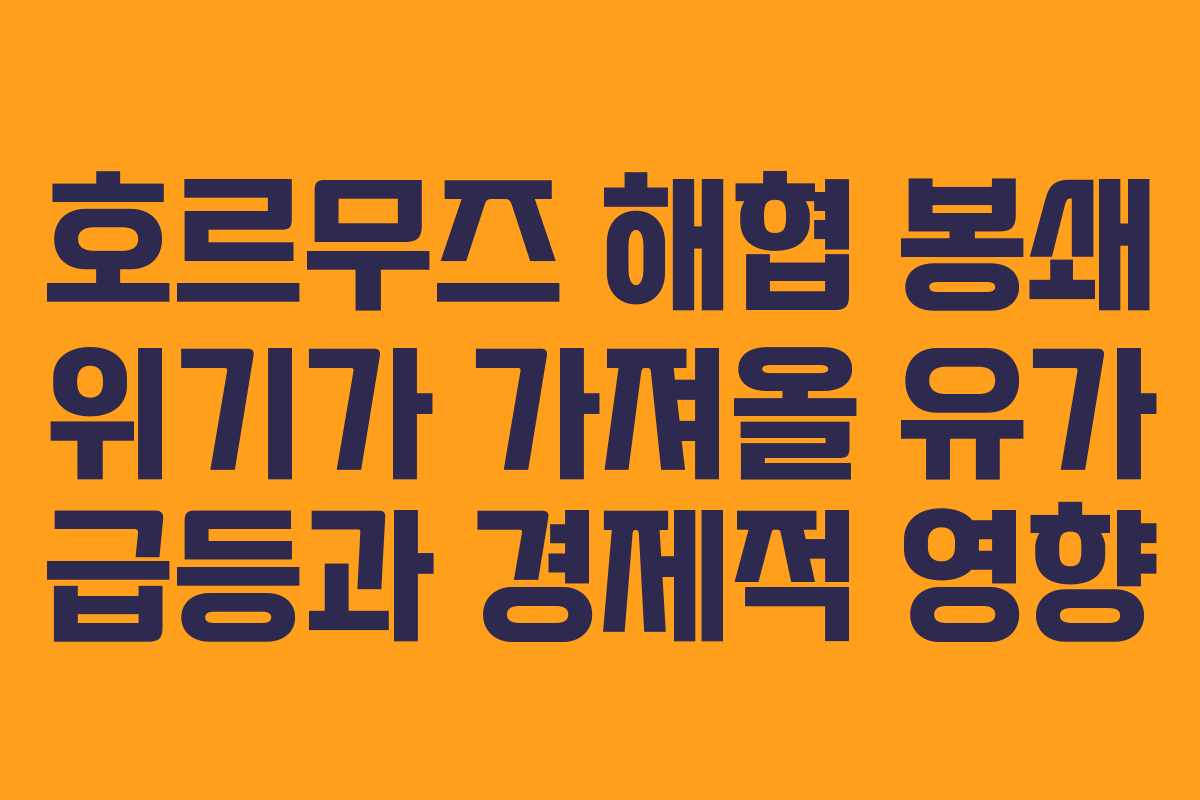 호르무즈 해협이 봉쇄되면 원유 공급이 급감하게 되어 유가가 상승하게 된다. 이는 글로벌 경제에 심각한 영향을 미칠 수 있다.