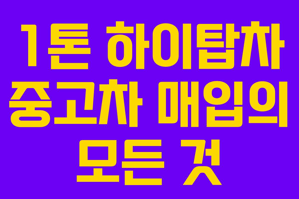 하이탑차는 중고차 시장에서 높은 수요를 자랑하는 차량 중 하나입니다. 특히 1톤 하이탑차는 적재 공간이 넓어 물류업체와 개인 사업자들에게 인기가 많습니다. 이번 포스팅에서는 하이탑차의 특징과 매입 과정에 대해 자세히 알아보겠습니다.