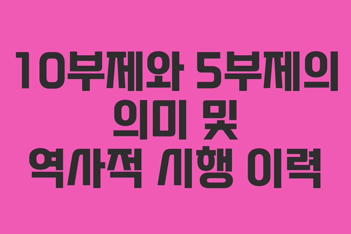 일상생활 속에서 자주 접하는 10부제와 5부제는 특정한 기준을 통해 사람이나 물품의 이용을 조절하는 데 사용되는 제도입니다. 이 제도들은 국가적 행사나 위기 상황에서 나타나며 우리의 일상에 큰 영향을 미칩니다. 이번 글에서는 이 두 제도의 구체적인 의미와 역사적 배경을 살펴보겠습니다.