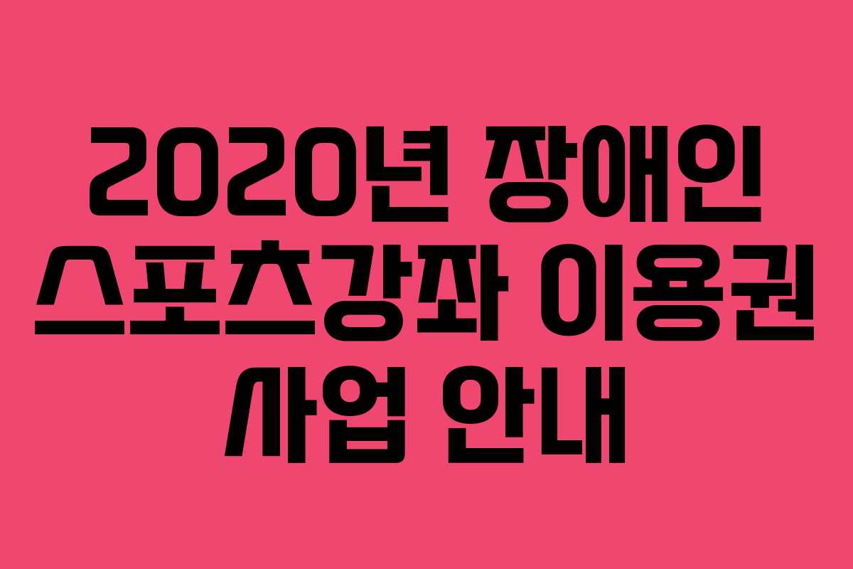 2020년 장애인 스포츠강좌 이용권 사업이 저소득층 장애인을 위한 특별한 지원을 제공하며, 이는 스포츠 참여를 확대하는 데 큰 도움이 될 것입니다.