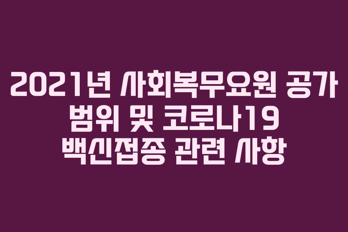 2021년 사회복무요원에 대한 공가 처리 기준이 코로나19 백신접종과 관련하여 개정되었습니다. 이 글에서는 사회복무요원의 공가 범위와 관련된 법령, 코로나19 상황에서의 처리 기준을 자세히 살펴보겠습니다.