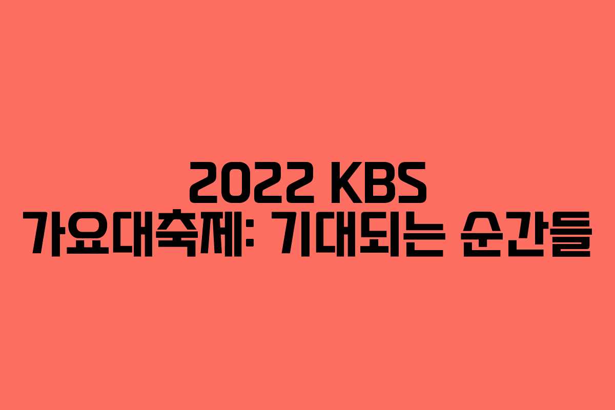 2022 KBS 가요대축제는 K-POP 팬들에게 잊지 못할 순간을 선사할 것입니다. 다양한 아티스트들과 함께하는 특별한 축제를 즐길 준비를 하세요!