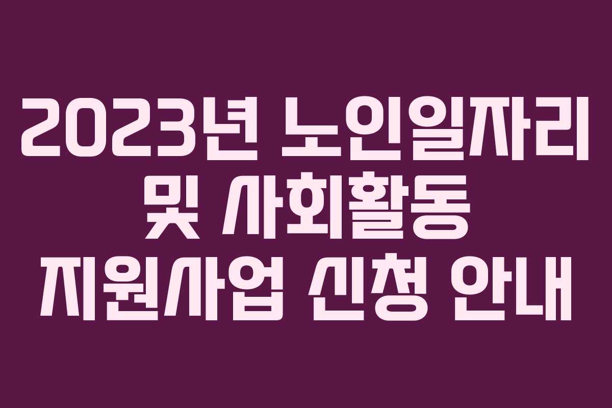 2023년에는 노인일자리 및 사회활동 지원사업이 어르신들의 활기찬 노후를 위해 다양한 기회를 제공합니다. 이 사업은 2004년부터 시행되어 왔으며, 어르신들이 건강하고 의미 있는 생활을 할 수 있도록 돕고 있습니다.