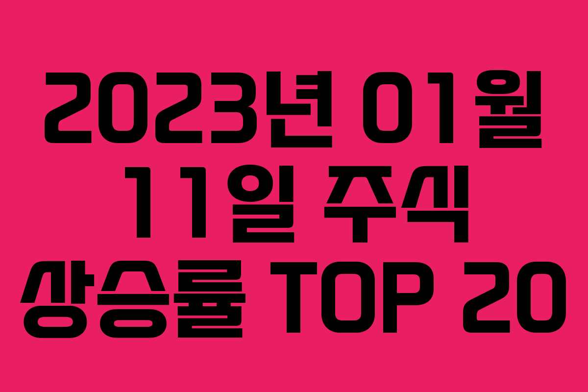 2023년 01월 11일, 주식 시장에서 가장 높은 상승률을 기록한 종목들을 살펴보겠습니다. 이 날의 주식 상승률 TOP 20 리스트와 함께 각각의 상승 요인을 분석해 보겠습니다.