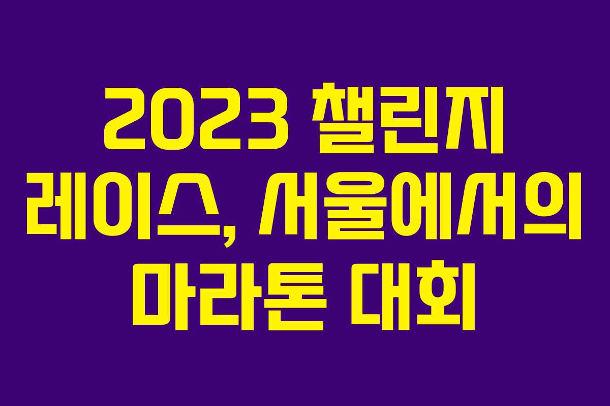 2023년 2월 26일, 서울의 여의도 한강공원에서 열리는 2023 챌린지 레이스에 대해 알아보겠습니다. 이번 대회는 서울 지역 주민들에게 접근성이 좋고, 참가비와 기념품이 타 대회에 비해 가성비가 뛰어난 것이 특징입니다. 특히, 서울국제마라톤(동마) 3주 전에 개최되어 동아마라톤을 준비하는 선수들에게는 훈련과 대회를 동시에 경험할 기회를 제공합니다.