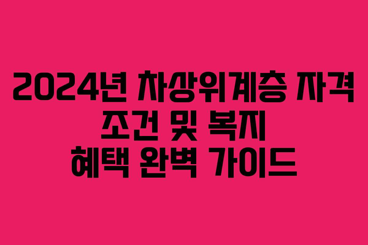 2024년 차상위계층은 기초생활수급자 바로 위의 경제적 계층을 의미하며, 소득이 최저생계비를 초과하지만 여전히 경제적 어려움을 겪고 있는 가구를 포함합니다. 이들은 근로 능력과 일정한 재산을 보유하고 있어 기초생활수급자 혜택을 받지 못하는 잠재적 빈곤층으로 분류됩니다. 정부는 이들을 위해 다양한 복지 혜택을 제공하여 자립할 수 있도록 지원하고 있습니다.