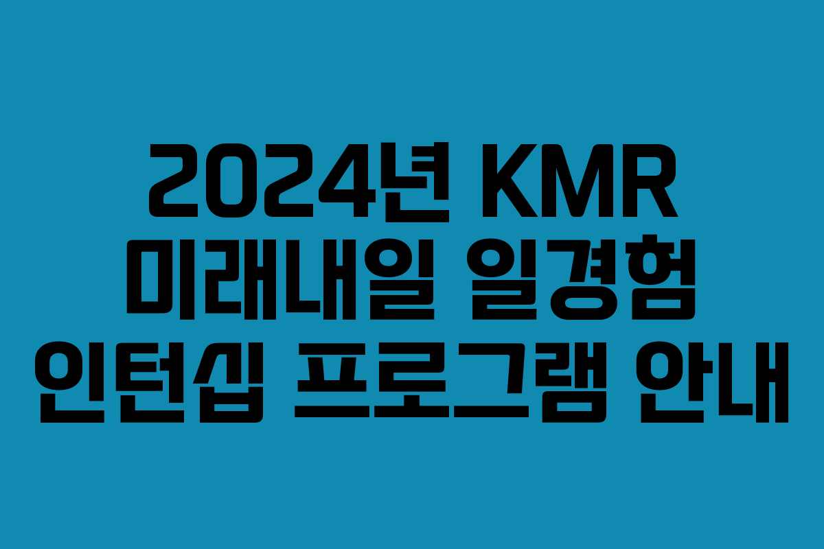 한국경영인증원(KMR)에서 주관하는 2024년 미래내일 일경험 인턴십 프로그램은 청년들에게 민간 기업에서의 다양한 일경험을 제공하여 구직 역량을 높이기 위해 마련되었습니다. 이 프로그램은 2022년부터 정부의 청년 일자리 정책의 일환으로 운영되고 있으며, 적극적인 참여를 통해 많은 청년들이 경력을 쌓을 수 있는 기회를 갖게 됩니다.