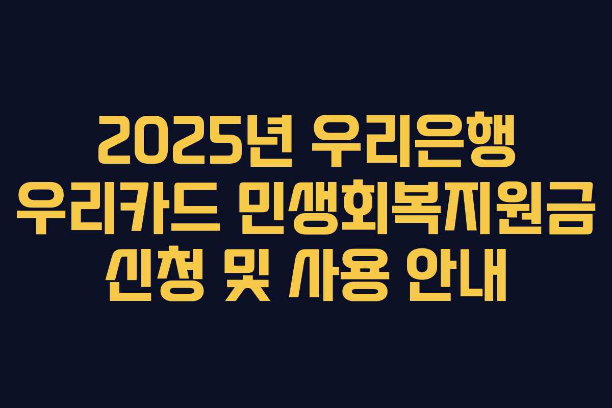 민생회복지원금은 정부가 내수 경제를 활성화하고 가계 부담을 줄이기 위해 마련한 소비 지원 정책입니다. 우리은행과 우리카드는 이 지원금을 신청하고 사용할 수 있는 금융기관으로, 소비자들은 본인의 우리카드를 통해 편리하게 지원금을 받을 수 있습니다.
