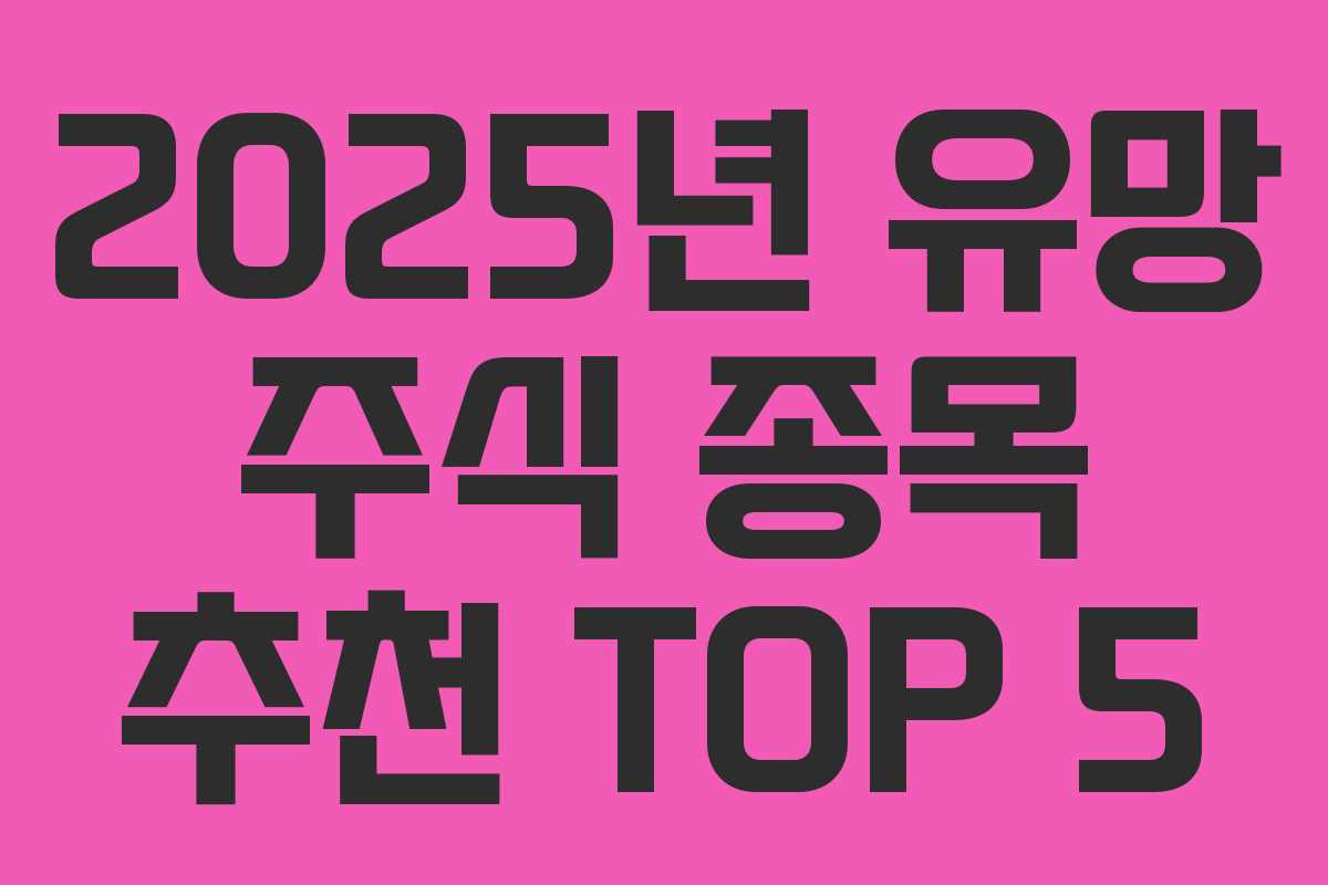 2025년이 시작되면서 많은 투자자들이 어떤 주식을 사야 할지 고민하고 있습니다. 매년 시장의 테마와 산업 흐름은 변화하지만, 주식 투자에서 가장 중요한 요소는 성장성, 수익성, 그리고 트렌드 반영입니다. 이번 글에서는 2025년 현재 기준으로 주목해야 할 유망 주식 5가지를 소개합니다.