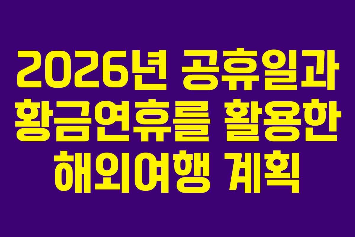 2026년은 여행을 계획하는 데 있어 매우 중요한 해가 될 것입니다. 공휴일과 황금연휴 일정은 여행의 효율성을 높이는 중요한 요소로 작용하죠. 이번 포스팅에서는 2026년 공휴일 달력을 바탕으로 황금연휴를 활용한 해외여행지 추천과 연차 활용 꿀팁을 다뤄보겠습니다. 미리 준비하여 더욱 알찬 여행을 계획해보세요.