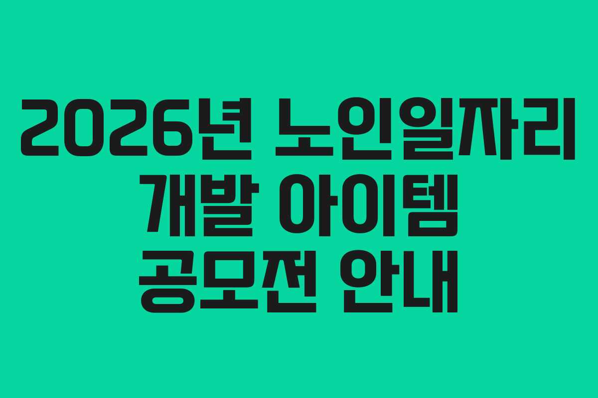 2026년을 대비한 노인일자리 개발 아이템 공모전이 열리고 있습니다. 이번 공모전은 노인층의 삶의 질을 높일 수 있는 실현 가능성이 있는 아이디어를 모집합니다.