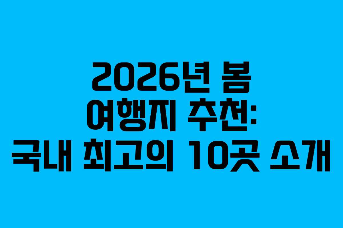 2026년의 봄은 따뜻한 날씨와 함께 여행 계획을 세우기에 최적의 시점입니다. 3월부터 5월까지는 벚꽃, 유채꽃, 튤립 등 다양한 꽃들이 만개하여 많은 이들이 여행을 떠나는 시기입니다. 이번 글에서는 2026년 봄에 추천할 만한 국내 여행지 10곳을 소개하고, 각 여행지의 축제 정보, 공식 사이트, 여행 팁 등을 함께 정리하였습니다.