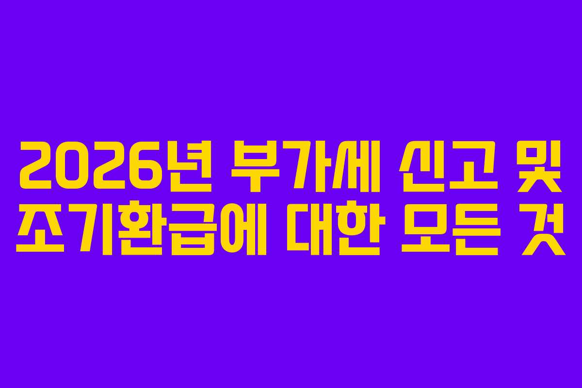 2026년 1월은 사업자들에게 세금 신고가 중요한 시기입니다. 이 시기에 부가가치세 확정신고를 통해 지난해 하반기 실적을 마무리해야 합니다. 특히 인테리어를 새로 하거나 초기 투자를 많이 한 사업자라면 환급금 수령 시기가 매우 중요할 것입니다. 이번 글에서는 2026년 1월의 부가세 신고 일정과 조기환급 방법에 대해 자세히 살펴보겠습니다.