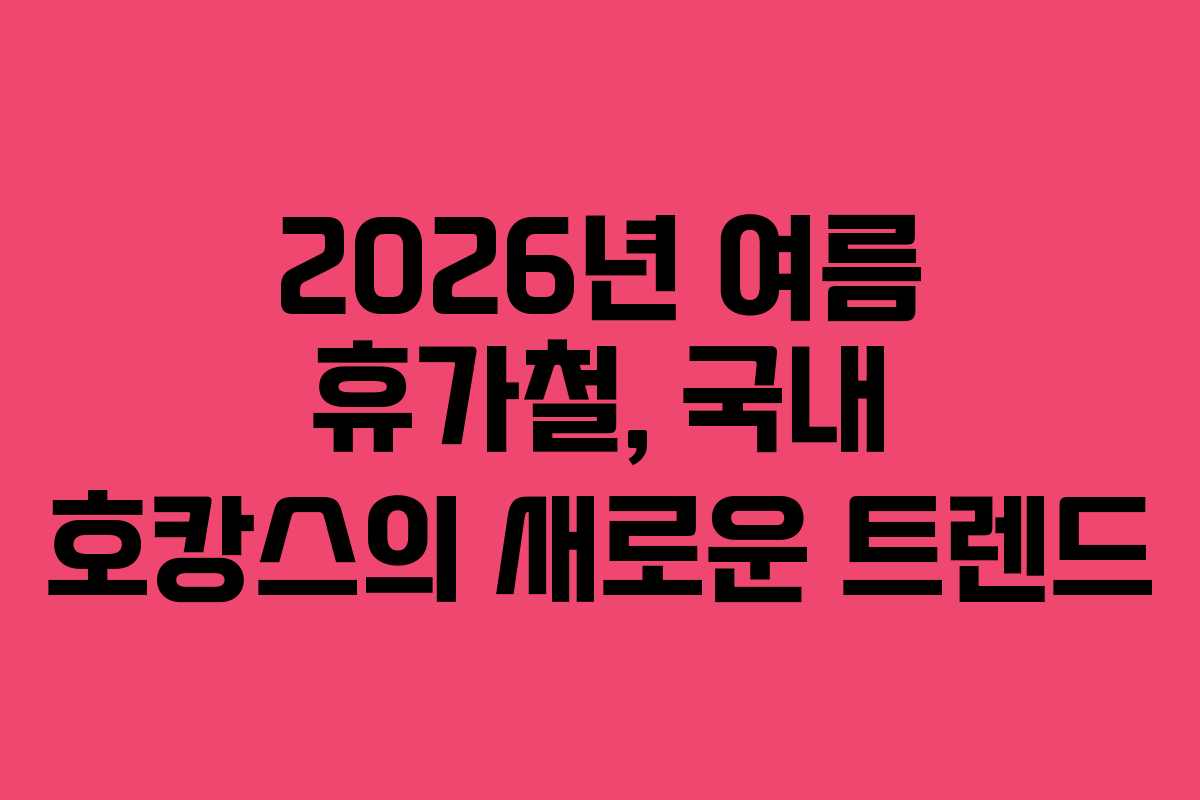 2026년 여름 휴가철을 맞아 호텔업계에서는 해외여행 대신 국내 여행을 선호하는 이들을 위한 다양한 호캉스 상품을 선보이고 있다. 엔데믹 이후 첫 여름 휴가철이 다가오고 있으며, 물가 상승과 코로나19 재확산 우려 속에서 프라이빗한 국내 호캉스의 수요가 급증하고 있다. 최근 G마켓과 옥션의 설문조사에 따르면, 응답자의 93%가 국내 여행 계획이 있다고 응답했으며, 50% 이상이 호텔을 숙소로 선택할 것이라고 밝혔다.