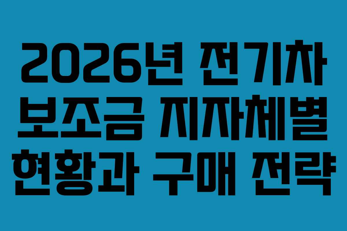 2026년 전기차 보조금 지자체별 현황과 구매 전략