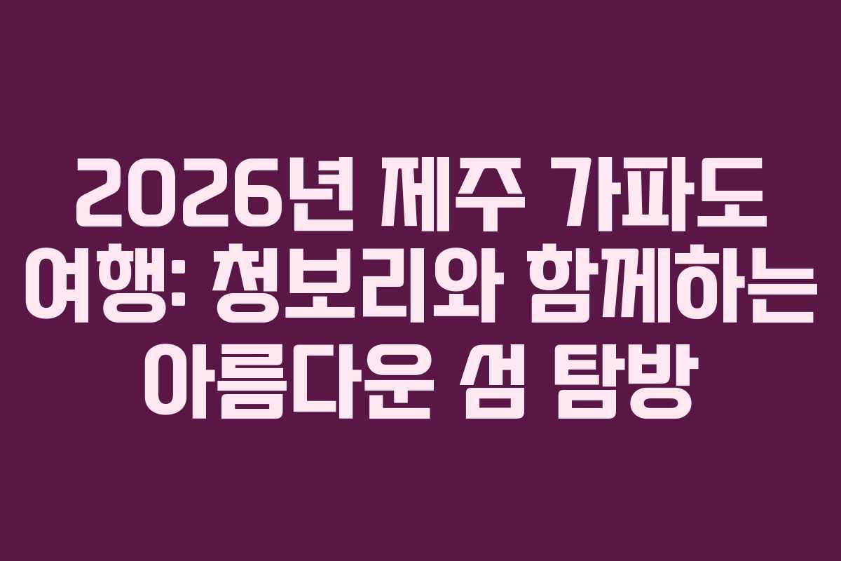 제주도 여행을 계획하는 이들에게 가파도는 언제나 흥미로운 선택지이다. 이 작은 섬은 청보리밭의 절경으로 유명하며, 방문자들에게 특별한 경험을 제공한다. 특히 2026년 봄, 청보리가 만개하는 시기에는 그 매력이 극대화된다. 이번 글에서는 가파도의 매력과 여행 시 유의해야 할 사항을 다뤄보겠다.