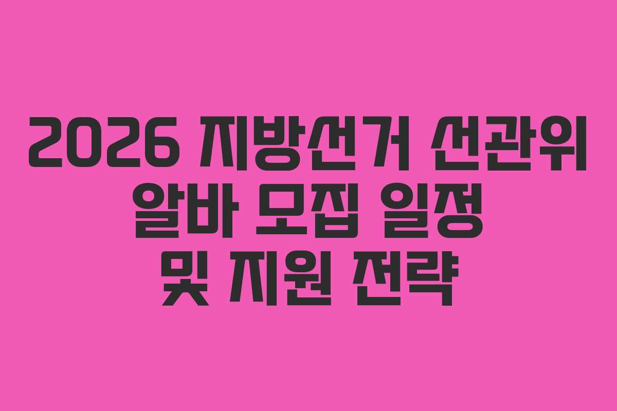 2026년 지방선거를 준비하는 이들에게 선관위 알바는 중요한 기회입니다. 이제 막 모집이 시작되면서 많은 분들이 언제, 어떻게 지원해야 할지에 대한 궁금증을 가지게 됩니다. 특히 지역별로 모집이 진행되기 때문에 공고를 놓치는 일이 발생하지 않도록 미리 정보를 확인하는 것이 필수적입니다. 본 문서에서는 2026년 지방선거 선관위 알바에 대한 상세한 내용을 안내합니다.