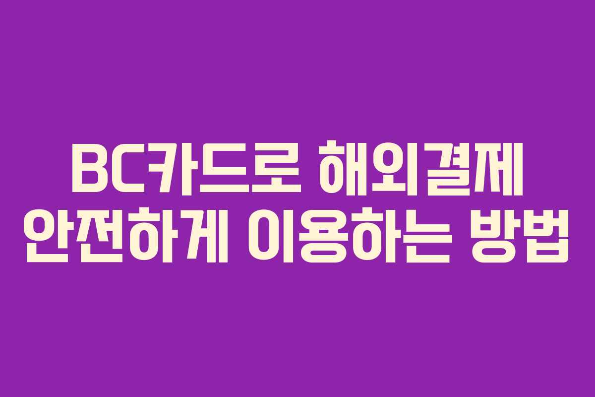 BC카드는 고객의 편의를 위해 다양한 서비스를 제공하며, 해외결제 관리를 신속하고 간편하게 할 수 있도록 돕고 있습니다. 이러한 기능을 적극 활용하면 해외 쇼핑이나 여행 시 더욱 안전하고 편리하게 결제할 수 있습니다.