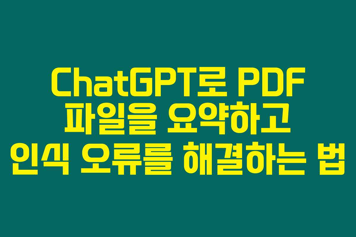 ChatGPT를 활용하여 PDF 파일의 요약 및 인식 오류를 해결하는 방법에 대해 아래를 읽어보시면 상세히 설명해 드립니다. 제가 직접 체크해본 바로는, ChatGPT에서 PDF 파일을 효과적으로 다루는 방법과 발생할 수 있는 오류의 해결책을 발견했습니다.