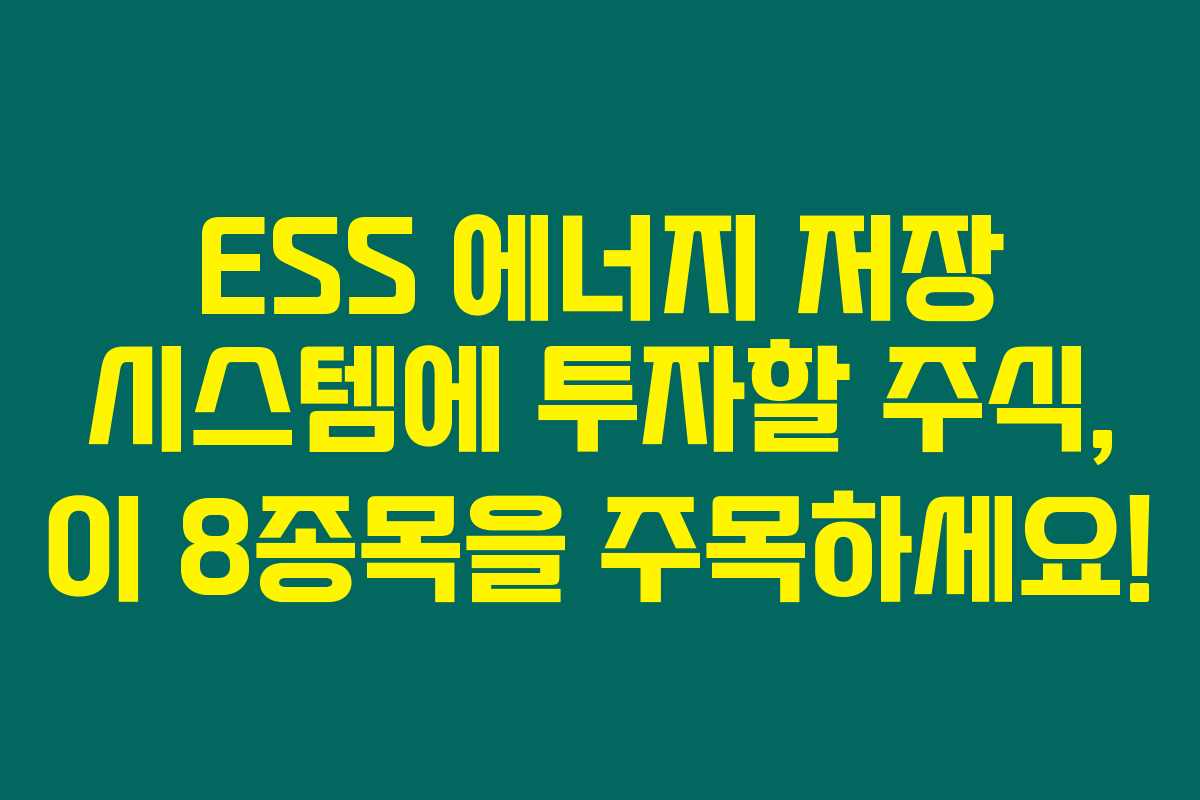 제가 직접 경험해본 결과로는, ESS 에너지 저장 시스템 관련주가 요즘 뜨거운 주목을 받고 있어요. 재생 가능 에너지의 필요성이 증가함에 따라 ESS가 필수적인 기술로 자리잡고 있죠. 아래를 읽어보시면, ESS 시장에서 주목할 만한 대장주와 테마주 8종목에 대해 알아보도록 하겠습니다.