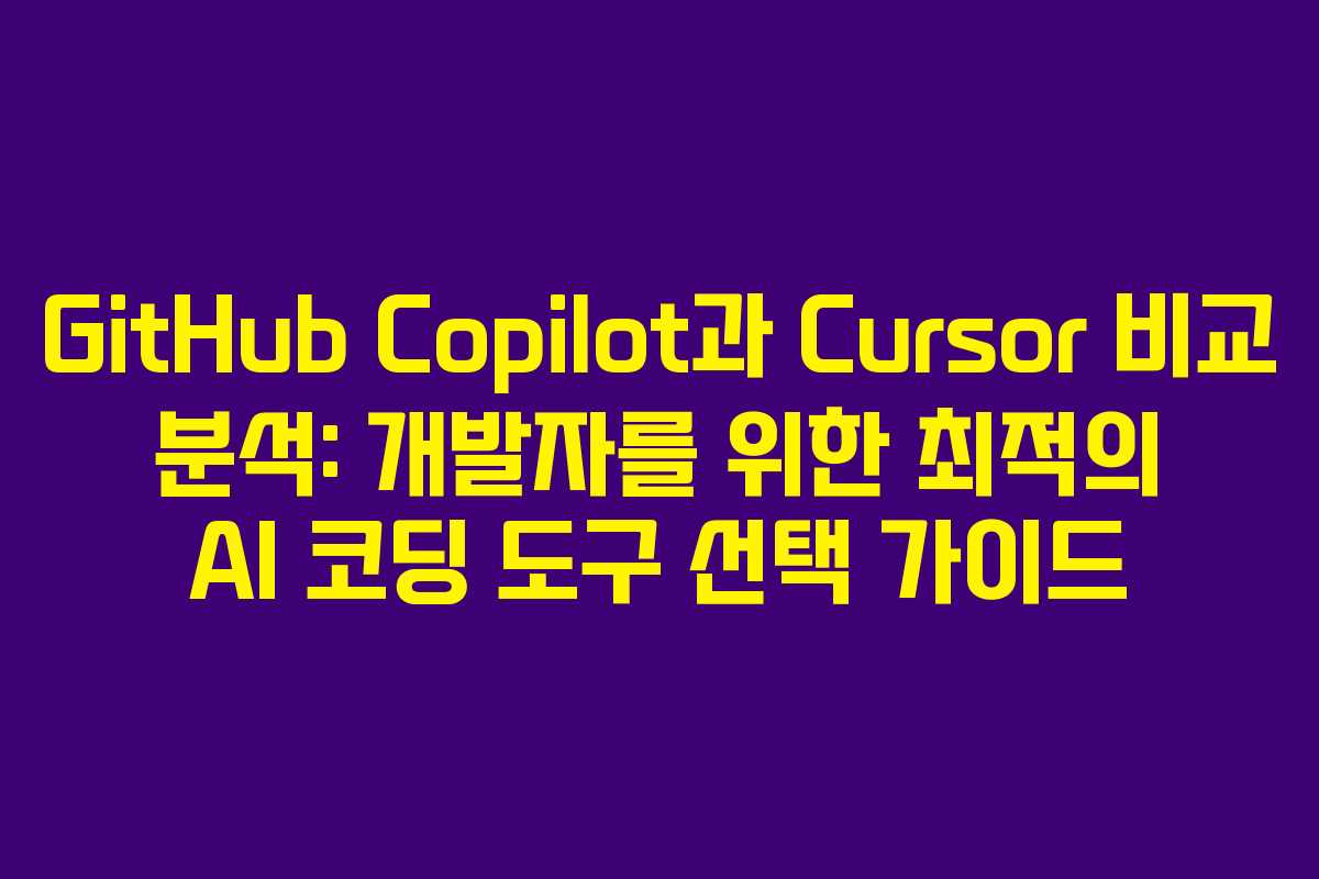 AI 코딩 도구는 소프트웨어 개발의 생산성을 크게 향상시키고 있으며, 그 중 GitHub Copilot과 Cursor는 개발자들 사이에서 인기가 높습니다. 이 글에서는 두 도구의 기능과 장단점, 가격을 비교하여 개발자들이 최적의 도구를 선택할 수 있도록 도와드리겠습니다.