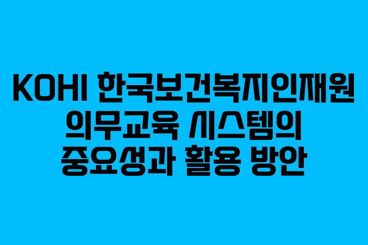 KOHI 한국보건복지인재원 의무교육 시스템은 보건복지 분야의 종사자들에게 필수적인 교육과정을 제공하는 플랫폼입니다. 이 시스템은 최신 지식을 반영한 체계적인 교육 프로그램을 통해 보건복지 서비스의 질을 향상시키고자 합니다. 이번 글에서는 KOHI 의무교육 시스템의 주요 기능 및 이용 방법에 대해 자세히 살펴보겠습니다.