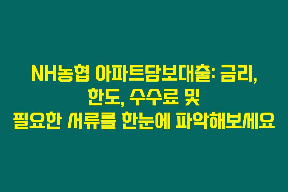 NH농협 아파트담보대출: 금리, 한도, 수수료 및 필요한 서류를 한눈에 파악해보세요