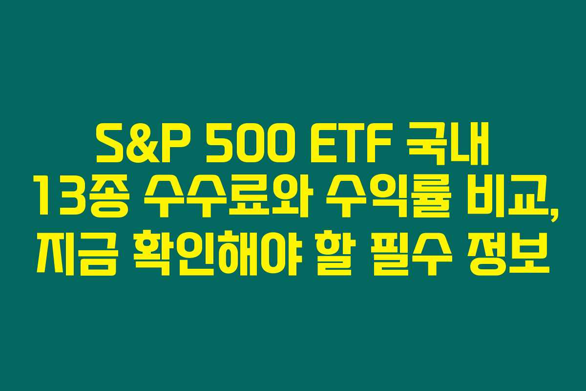 미국 S&P 500 ETF에 투자하고 있다면 반드시 알아두어야 할 내용이 있습니다. 2024년 8월 3일 기준으로 국내에서 상장된 S&P 500 ETF 13종의 수수료와 수익률을 비교해 보았습니다. 최근 시장의 변동성이 커지고 있는 만큼 여러분의 소중한 자산을 안전하게 지키기 위해 필요한 정보가 가득하니, 아래를 읽어보시면 유용할 겁니다.